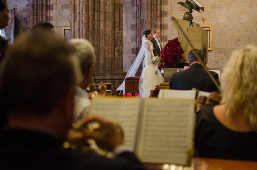El día se torno espectacular, durante el maquillaje y peinado de Claudia ella se mantuvo serena y tranquila, disfrutando su momento. Después de que estuviera lista la novia con su vestido nos fuimos a la ceremonia religiosa, llevada a cabo en el templo El Expiatorio, ubicado en el centro de la ciudad de Guadalajara. La recepción se llevo a cabo en el Club Atlas.