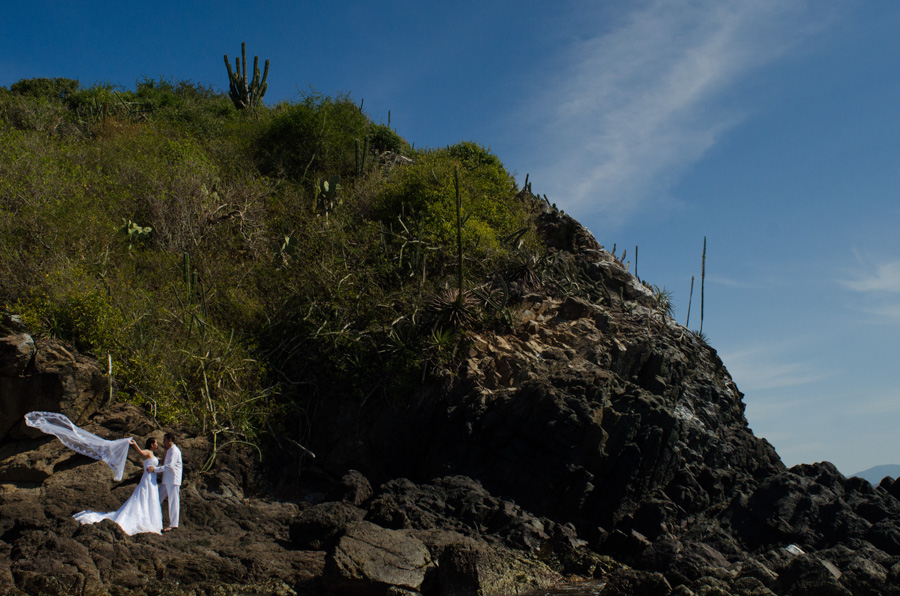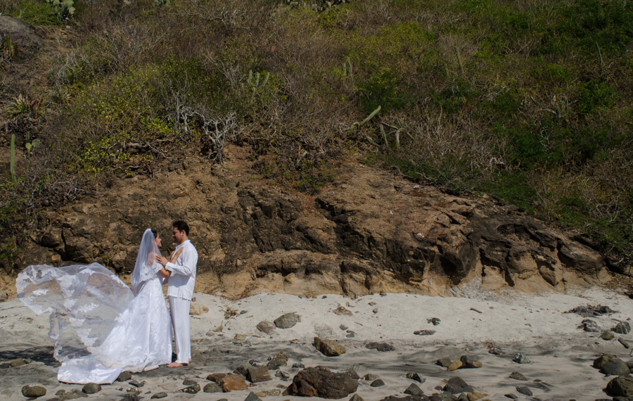 Este trash the dress lo realizamos en una locación bellísima, llena de naturaleza, Isla Cocinas, en la Bahía de Chamela, Jalisco. Pasamos una tarde extraordinaria haciendo sus fotos y disfrutando del bello paisaje.